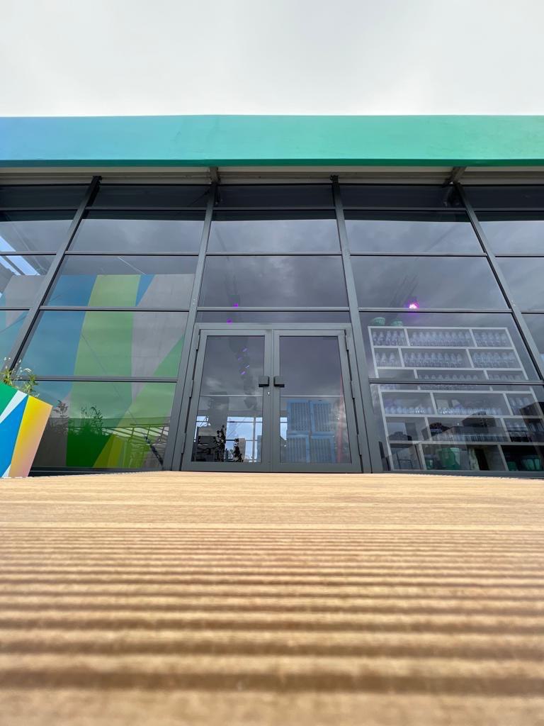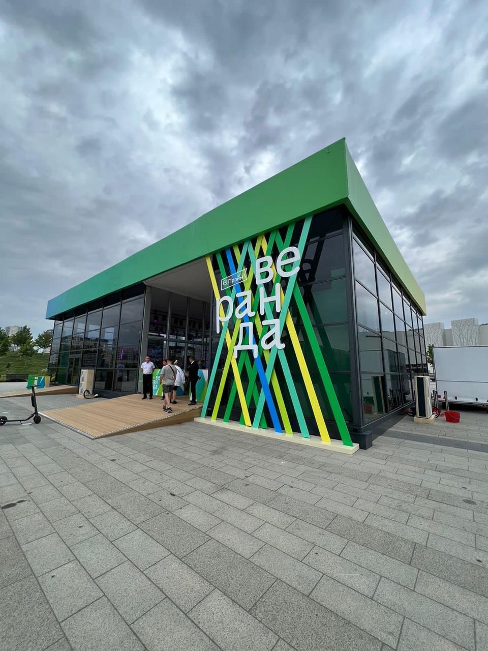 Новая форма фасадного остекления является более панорамной и открытой, а также размещается в горизонтальном формате, в отличии от первой версии павильона.