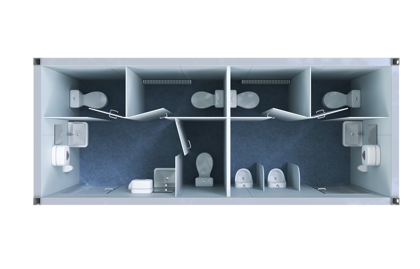 Контейнеры выполнены в нейтральном светло-сером цвете и могут быть декорированы при необходимости.