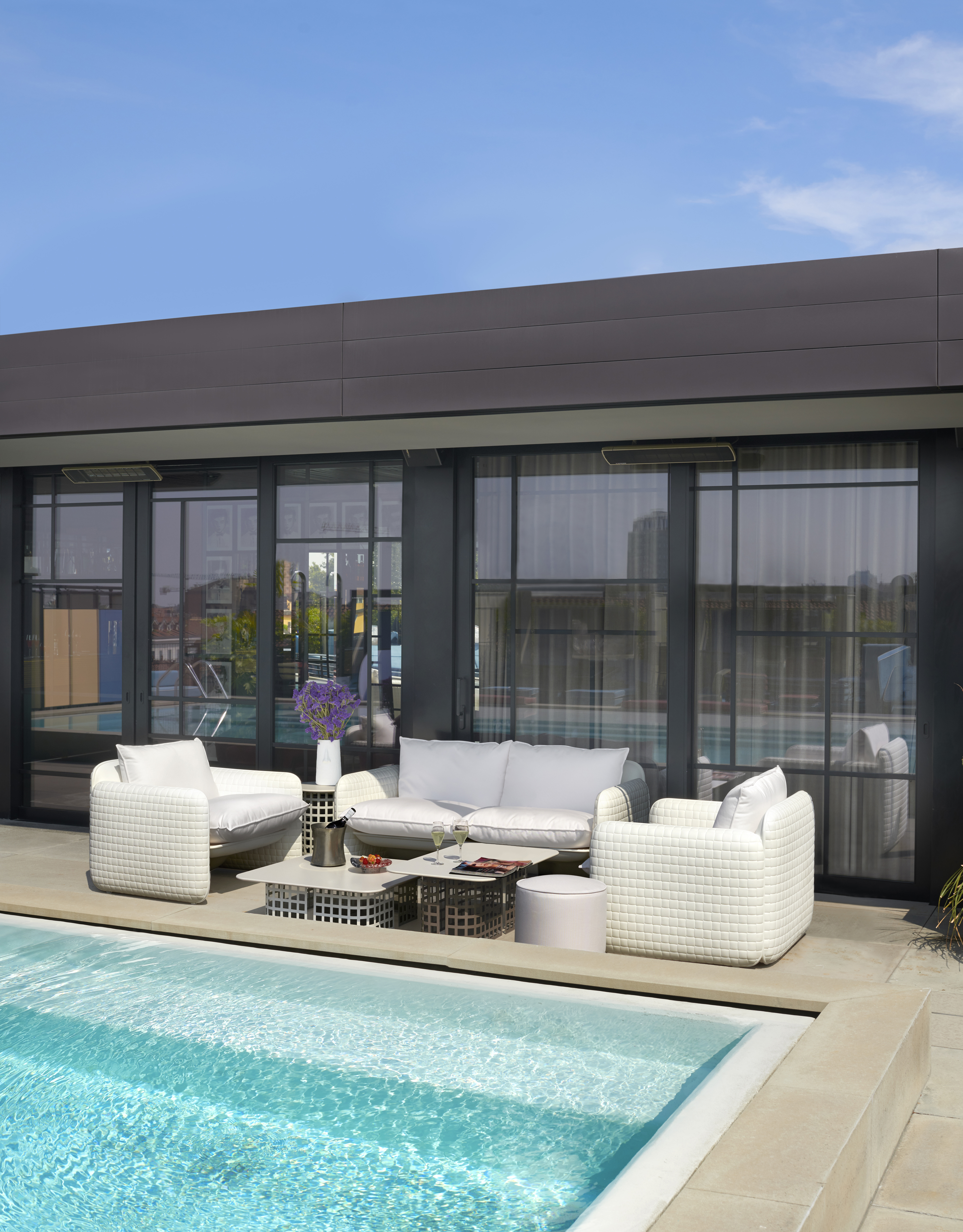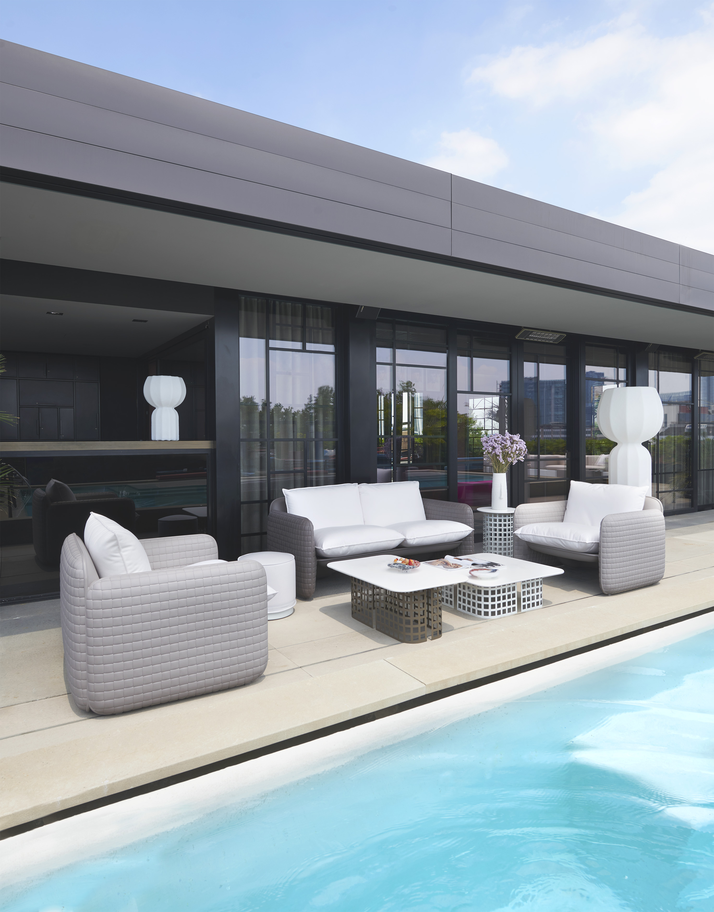 Новая коллекция итальянской мягкой мебели для использования в помещениях и уличных пространствах.