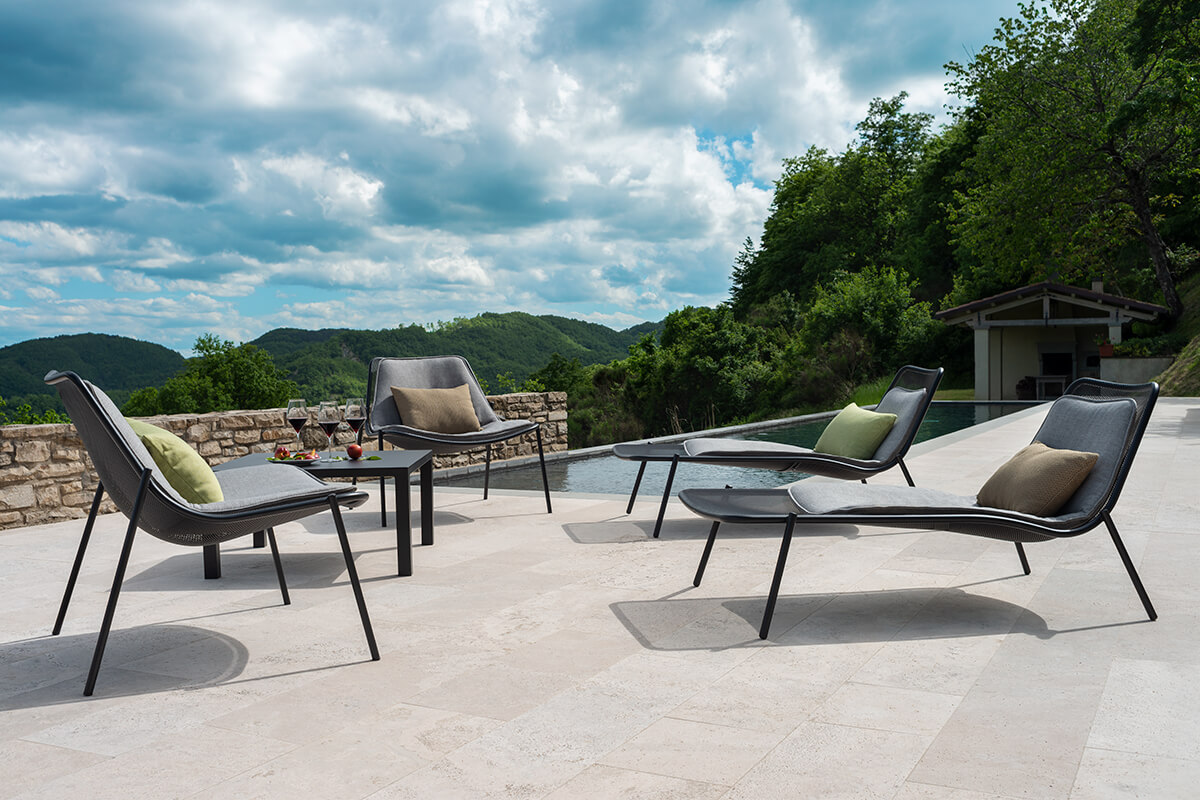 Тонкая плетеная стальная рама является отличительной особенностью коллекции со стройными линиями и общей гармонией.